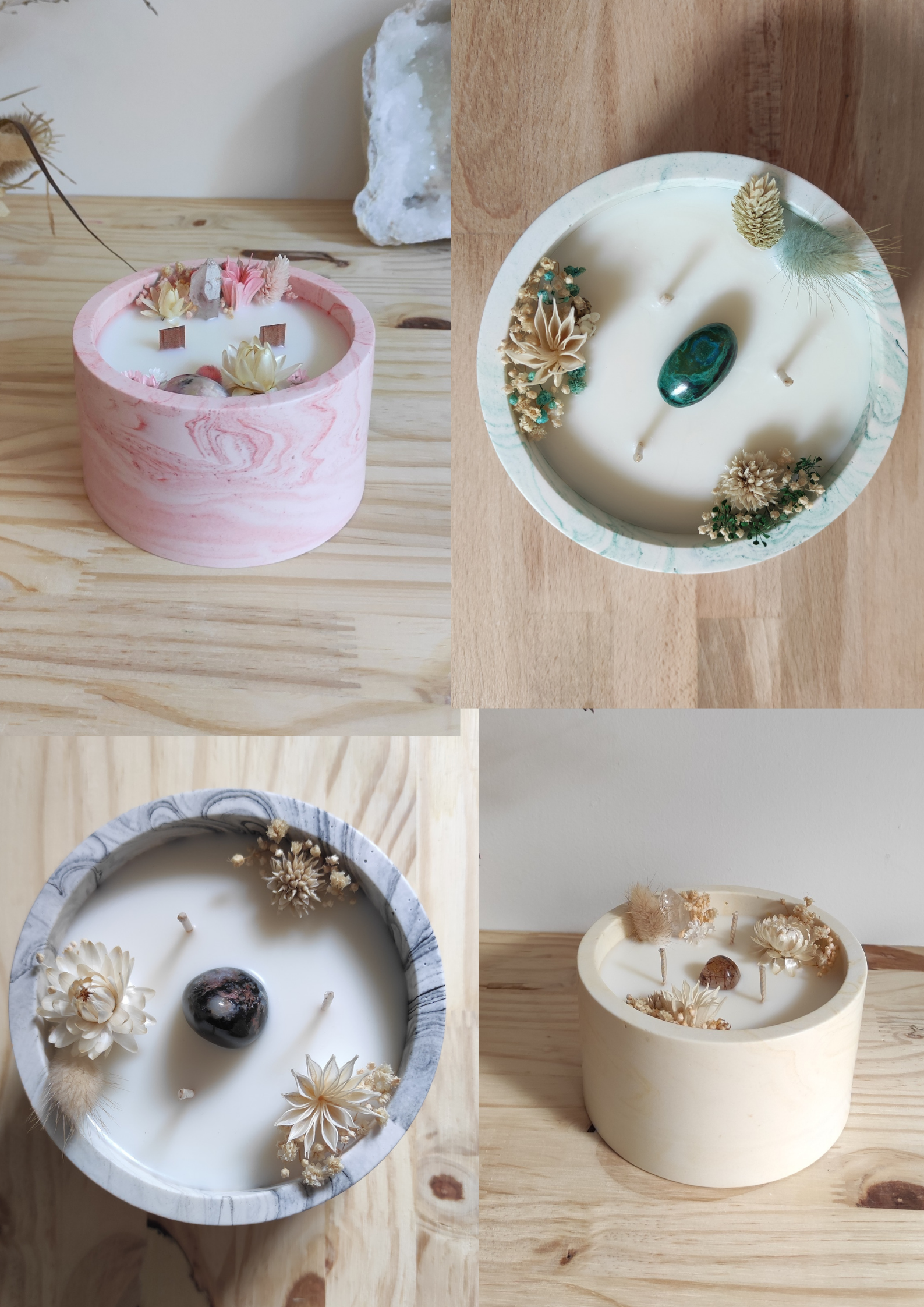 Dans la limite de mon stock de parfums, de pierres et en fonction de mes modèles de pots proposés sur la boutique. Je me réserve le choix du type de fleur séchée pour la décoration, dans le respect de votre demande pour la couleur.